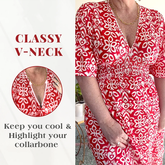 🔥Last Day Promotion 50% OFF🔥🔥✨Women's Printed V-Neck Pleated Dress