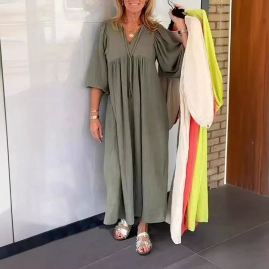 🎁Limited time 50% OFF⏳✨Bubble & 3/4 Sleeve V-Neck Maxi Dress