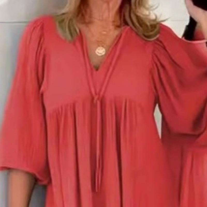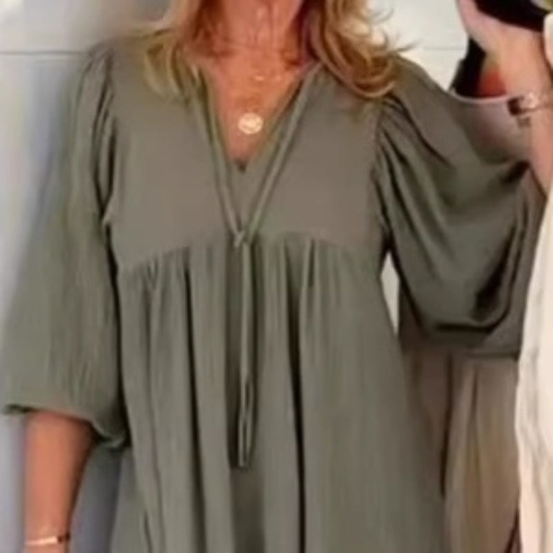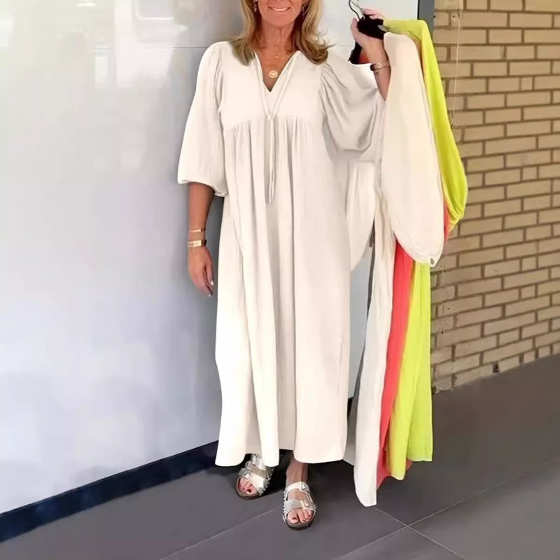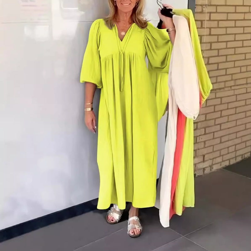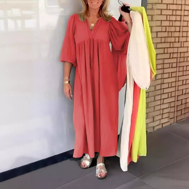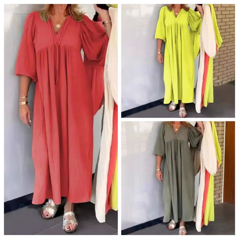 🎁Limited time 50% OFF⏳✨Bubble & 3/4 Sleeve V-Neck Maxi Dress