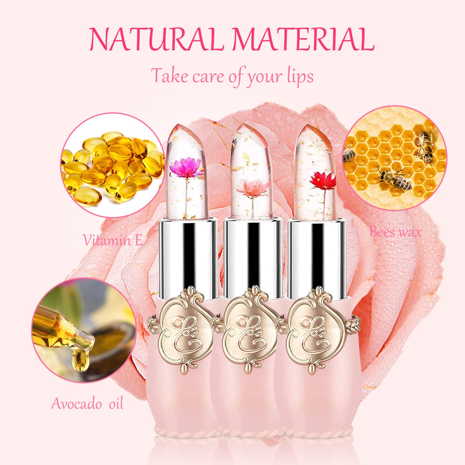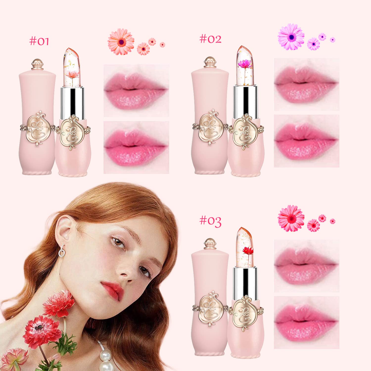 - Package includes: 1 x Crystal Jelly Flower Color Changing Lipstick