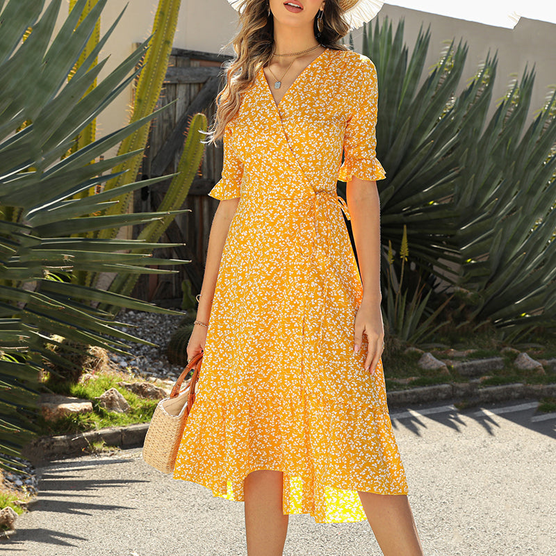 🎁Limited time 49% OFF⏳Women's Floral Wrap Dress with Ruffle Sleeves