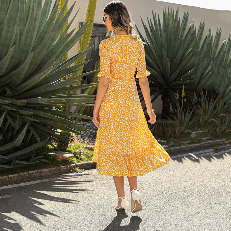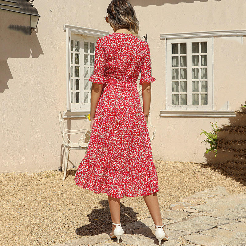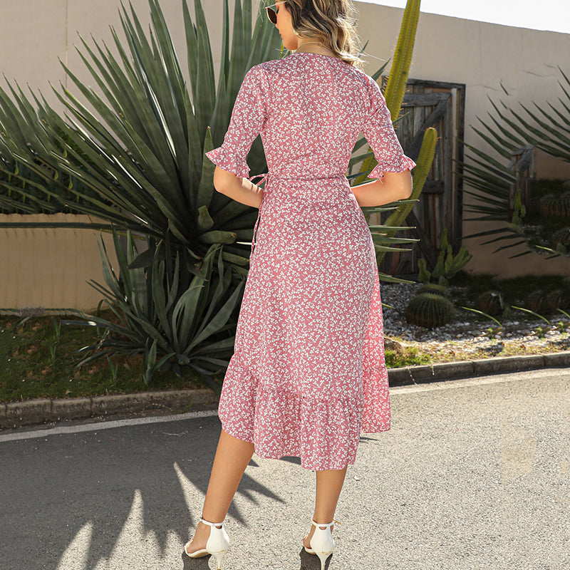Package includes: 1* Women's Floral Wrap Dress with Ruffle Sleeves
