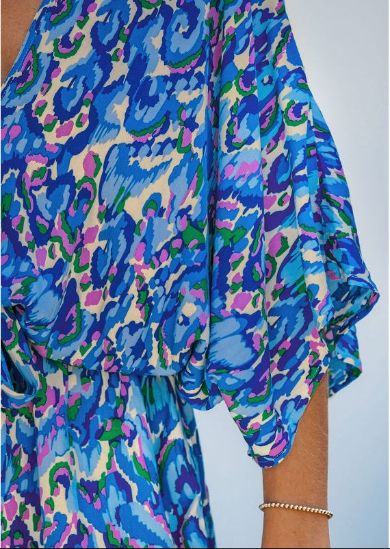 🔥Hot Sale 50% OFF💝✨Women's Summer Casual V-Neck Printed Jumpsuit with Waist Tie and Dolman Sleeves