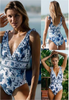 🔥Hot Sale 49% OFF💝✨V Neck Lace Up Printed One Piece Swimsuit and Skirt