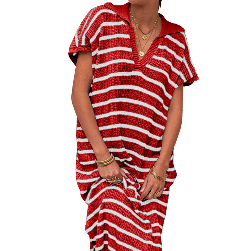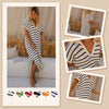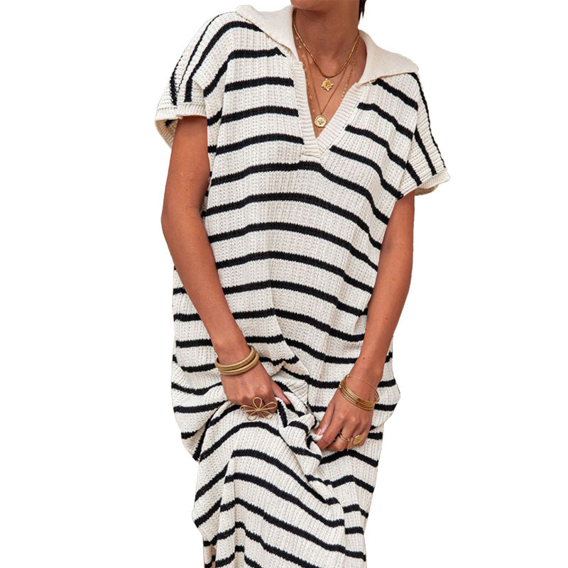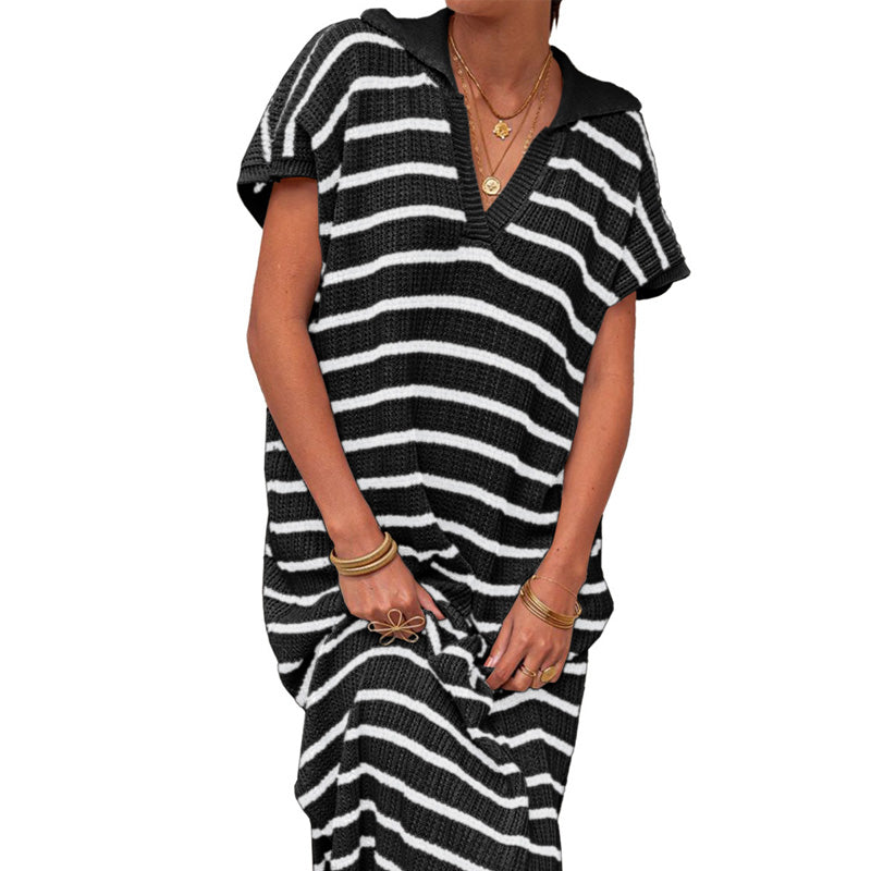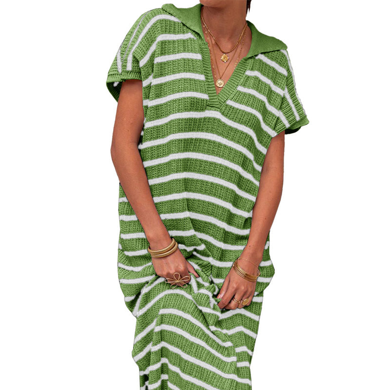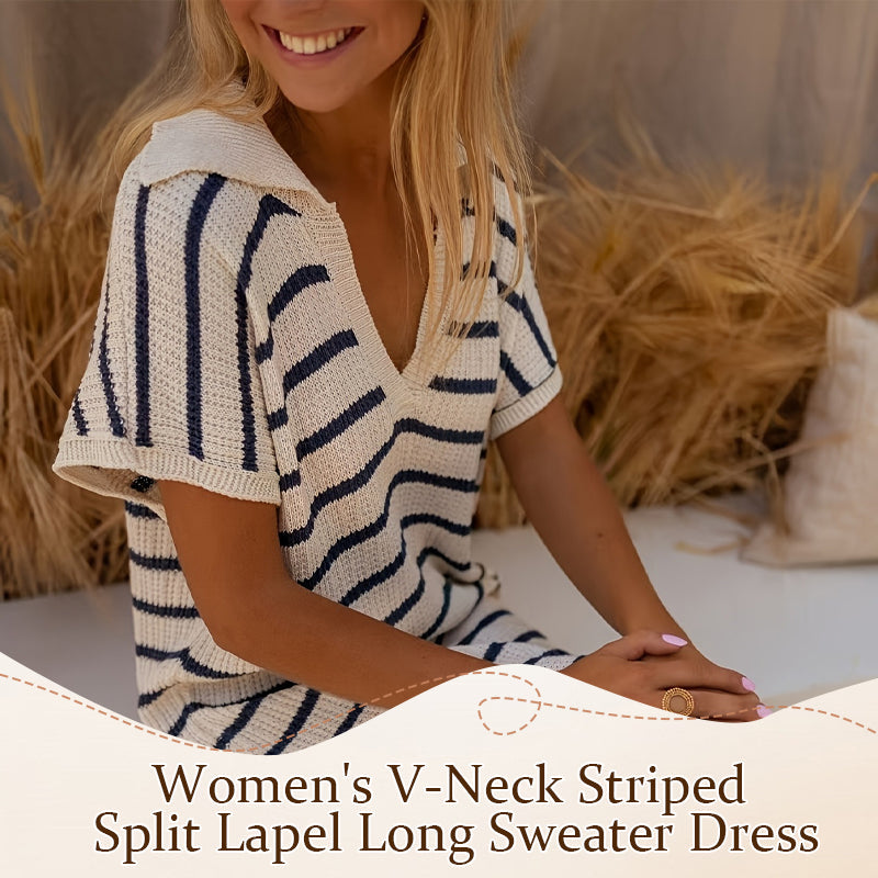 ⏰Early Autumn Sales 50% OFF🔥Women's V-Neck Striped Split Lapel Long Sweater Dress