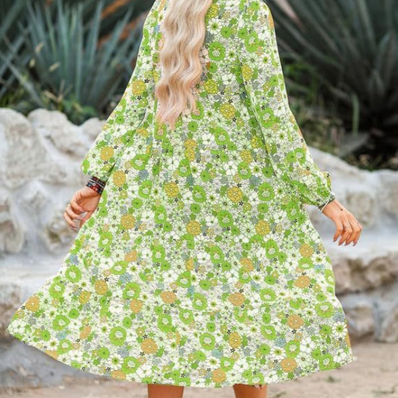 Chic Desgin:The V-neck design cleverly showcases the feminine neckline, adding a playful element to the ensemble while exuding a sense of sensuality and elegance,The infusion of Bohemian and floral prints creates an artistic atmosphere