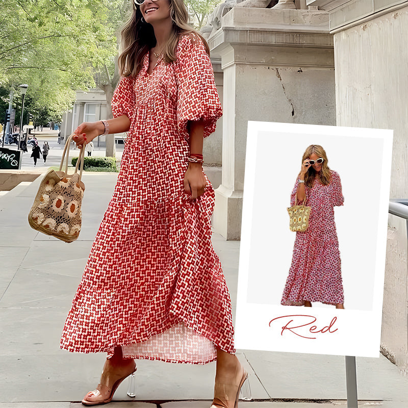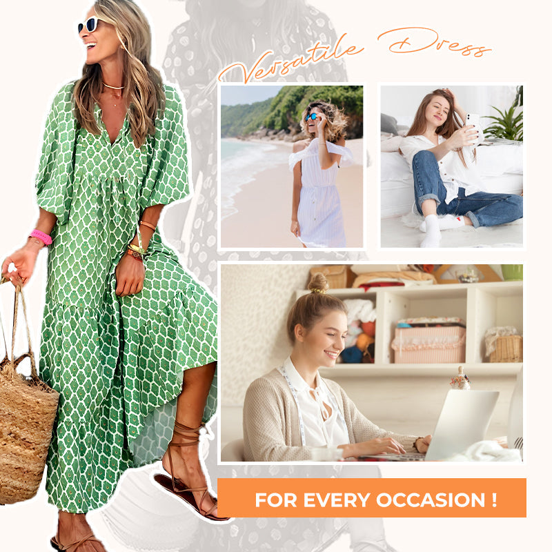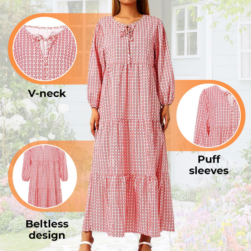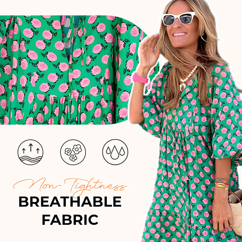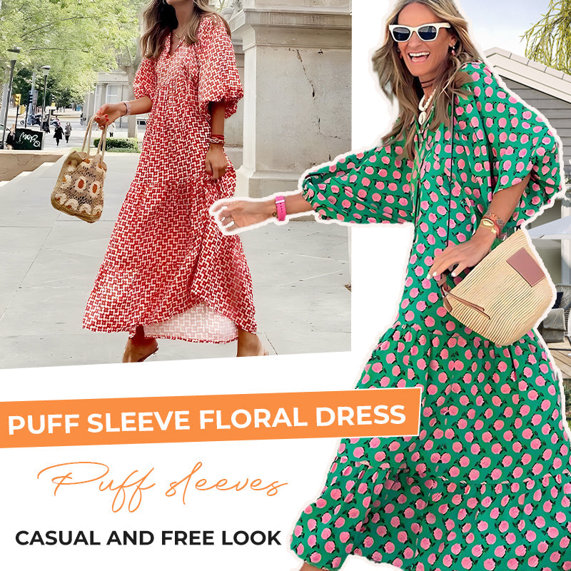 🔥Hot Sale 49% OFF💝✨V-neck Puff Sleeve Floral Dress