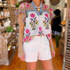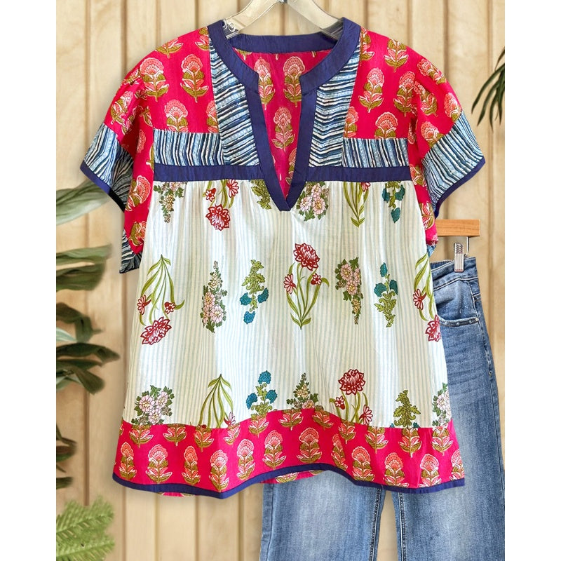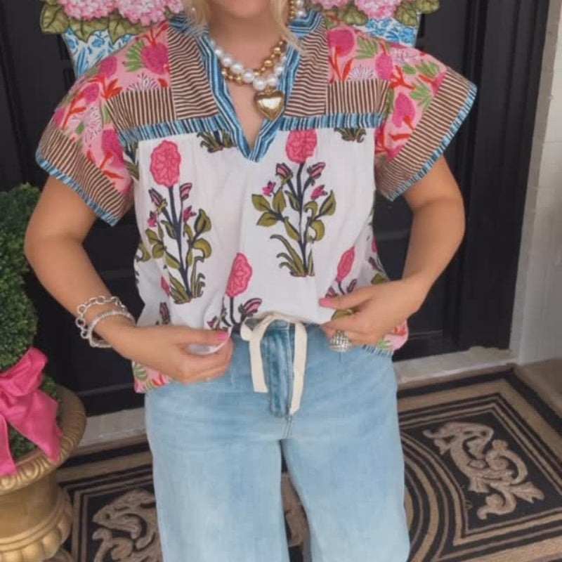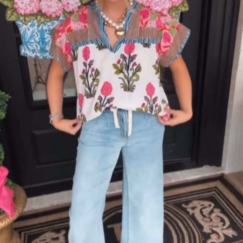 Perfect for adding a pop of interest to solid bottoms like jeans, skirts, or shorts, it’s versatile enough for both relaxed and semi-dressy occasions.
