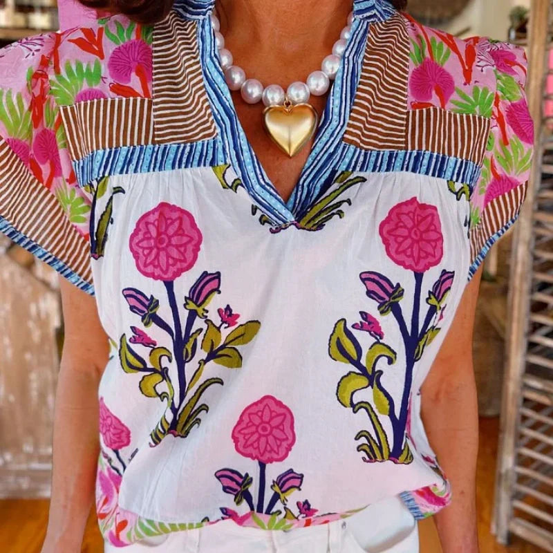 🎁Limited time 50% OFF⏳✨Women's Casual V-Neck Short Sleeve Printed Top