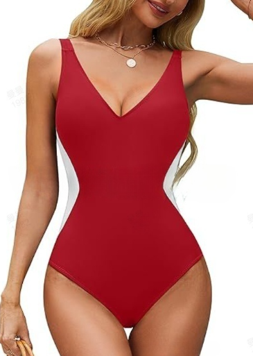 🎁Limited time 49% OFF⏳✨Illusion Waist-Cinching Deep V Color Block Swimsuit