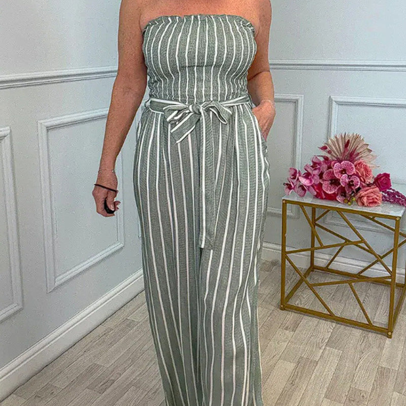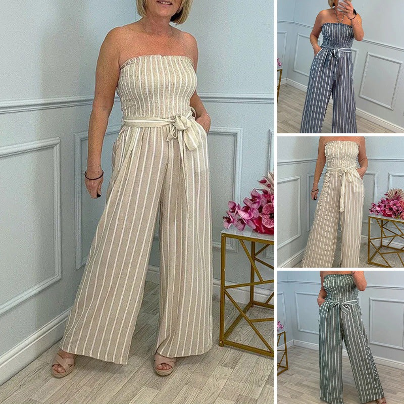 🎉Last Day Promotion 50% OFF💃Strapless Waist-Tie Striped Jumpsuit