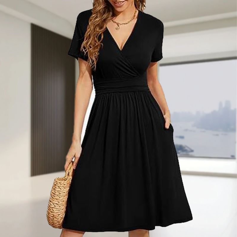 Package Includes: 1 * Women’s Elegant Solid-color V-neck Dress with Pockets