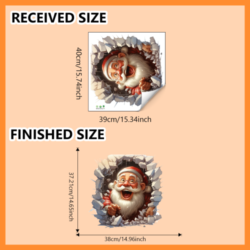 This is not just a flat sticker; it is an eye catching piece of art. The clever design creates a fun 3D illusion of Santa peeking right into your room.